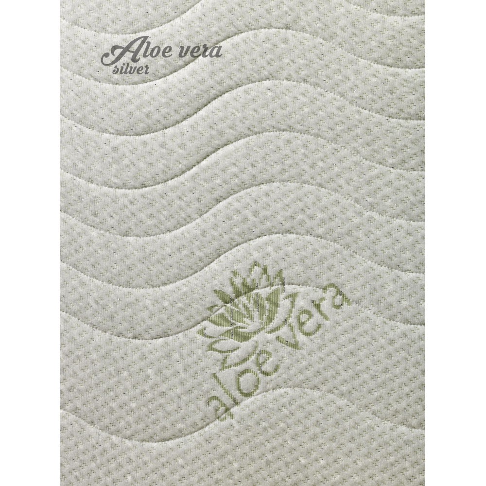 Poťah je vyrobený z hypoalergénnych materiálov najvyššej kvality. Aloe Vera Silver je ideálne riešenie pre alergikov a osoby s citlivou pokožkou. Vďaka materiálu, ktorý obsahuje účinný extrakt z listov Aloe Vera poťah vytvára príjemný pocit chladu a je príjemný pre pokožku užívateľa. Poťah je prešívaný aktívnym striebrom, ktoré sa vyznačuje antibakteriálnymi vlastnosťami. Ióny striebra prirodzene zabíjajú roztoče, spóry húb a plesní, vďaka čomu dlhodobo udržiavajú matrac hygienicky svieži a bez zápachu. Strieborné prešívanie v kombinácii s látkou Aloe Vera navyše matracu dodáva antistatické vlastnosti a atraktívny vzhľad. Poťah je odzipsovateľný, delený na 2 časti a pratelný na 60°C. Poťah ma úpravu proti žmolkovaniu.